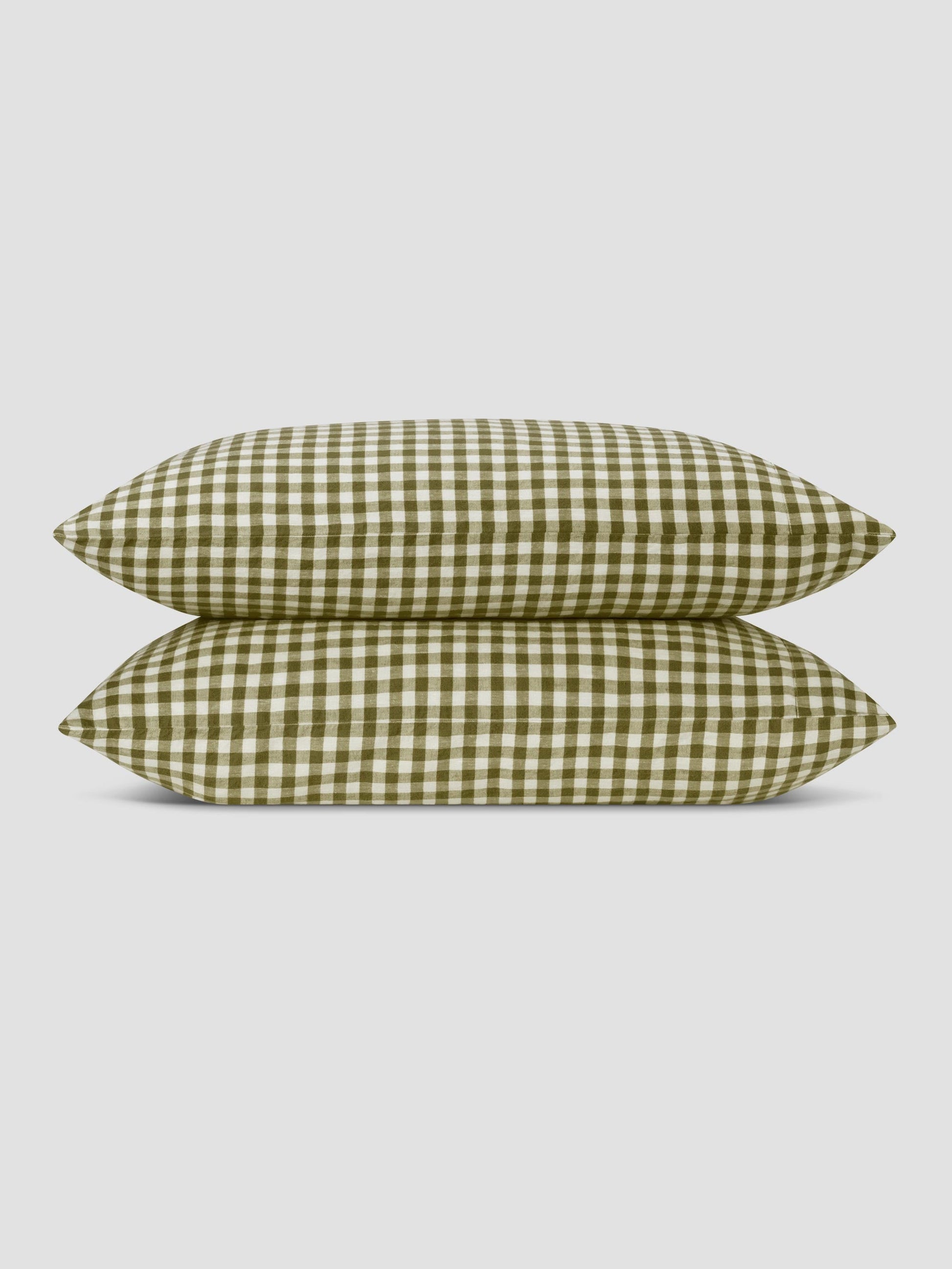 Introducing our nostalgic gingham linen pillowcases, now available in our olive-toned hue: Botanical Green. Made in Portugal from high-quality European linen, our gingham linen pillowcases are both soft and breathable. All our pillowcases have envelope closures, making sure your pillow stays out of sight.