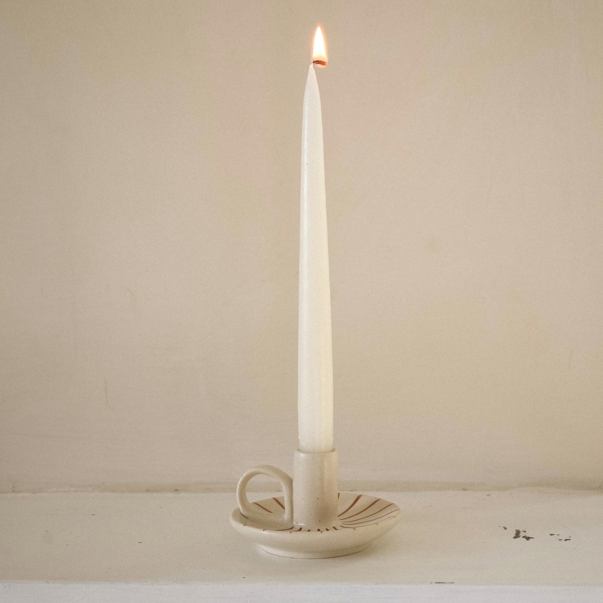 Bring some extra charm to your table or mantelpiece with our Wee Willy Winkee candle holders. Crafted by skilled artisans in India, each piece features delicate painted stripes around the base with a hand-finished glaze. Pair with our beeswax dining candles for a warm, inviting ambience.