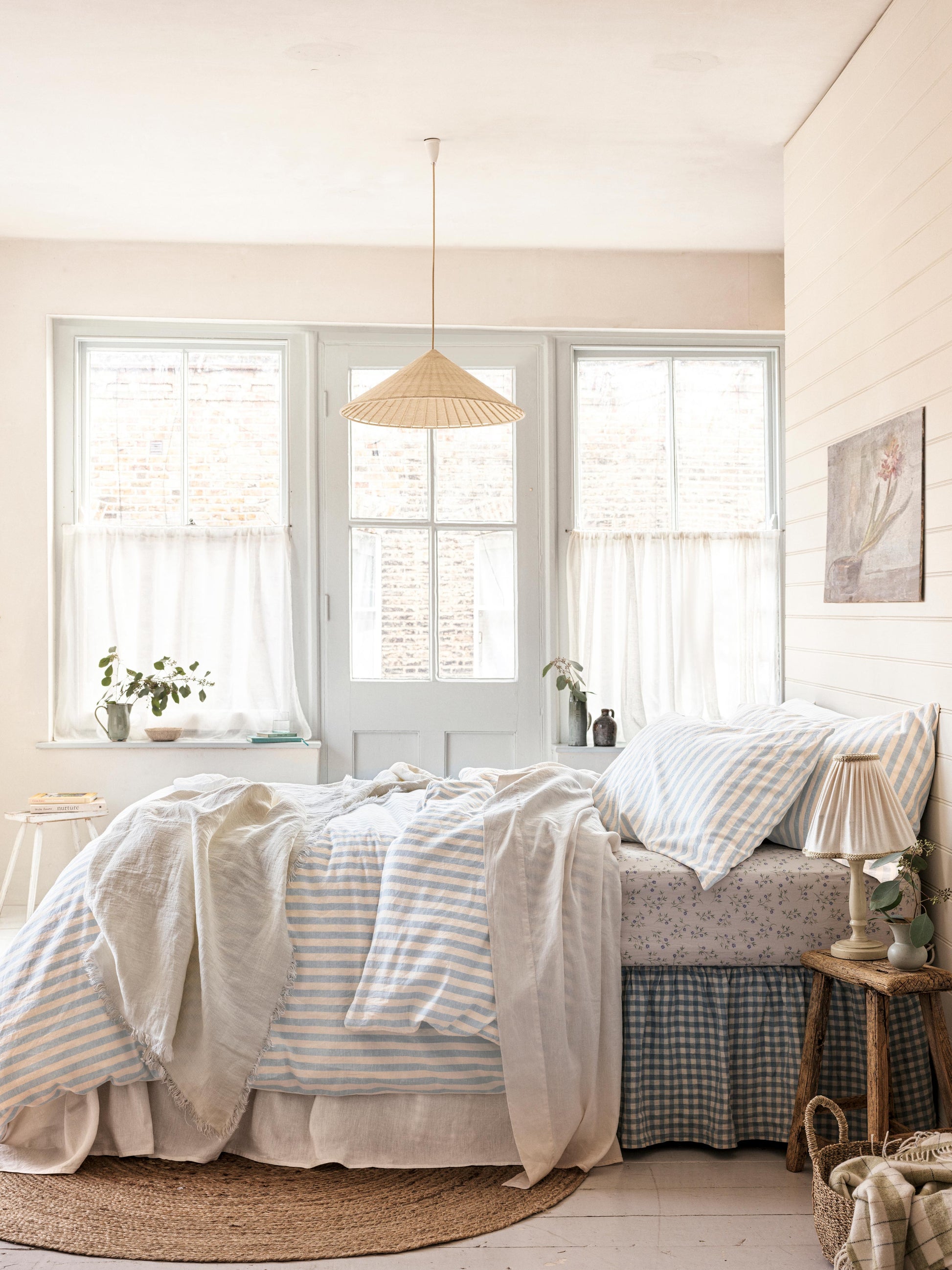 Nestle into nostalgia with our bold deck-chair-inspired Coastal Blue Pembroke Stripe linen blend duvet cover. Made from only the highest-quality fibres, the breathable fabric combines the effortless look of linen with the softness of cotton. Our linen blend duvet covers are finished with coconut shell button fastenings and feature handy inside corner ties to stop your duvet from slipping.