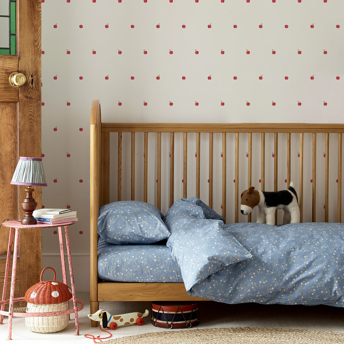 With a hand-painted pattern created by our in-house design team, this illustrated Apples wallpaper brings a sense of fun and adventure to playful spaces. Our non-woven wallpaper is easy to apply and incredibly hardwearing, with a thick feel and textile-like appearance.