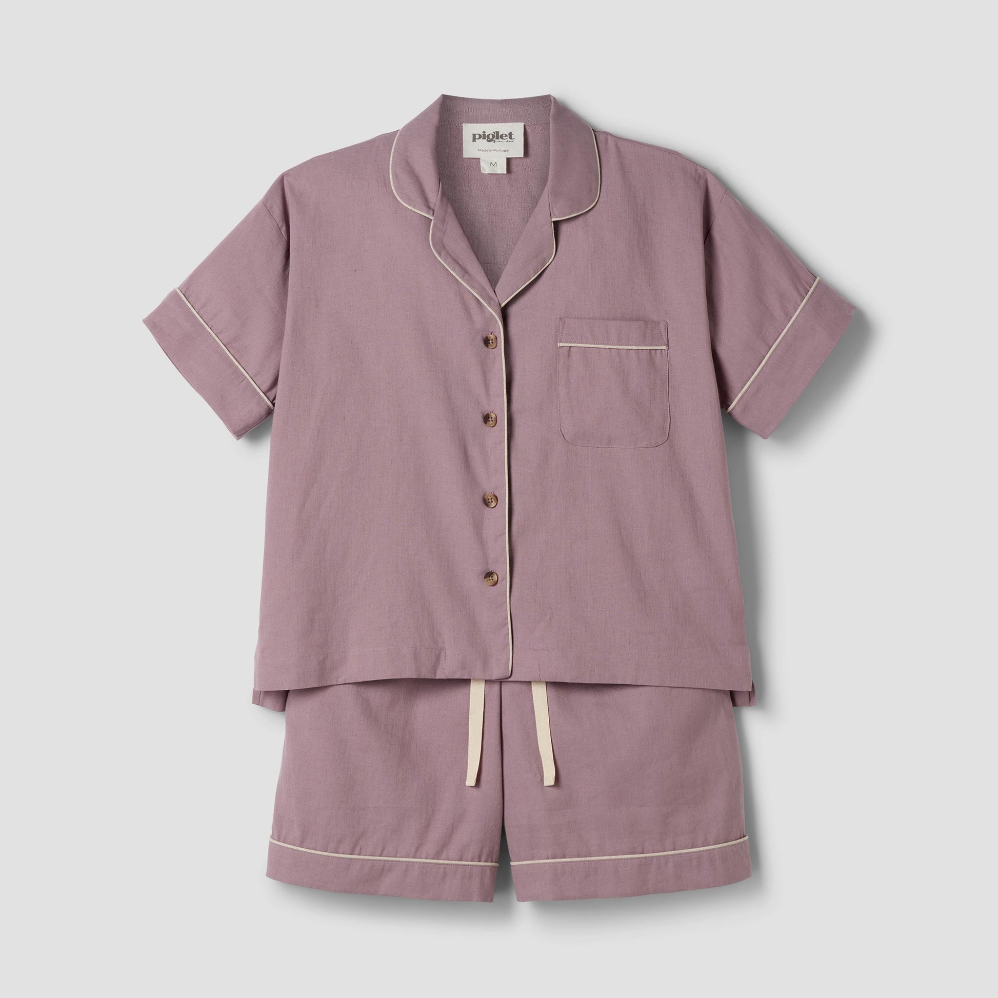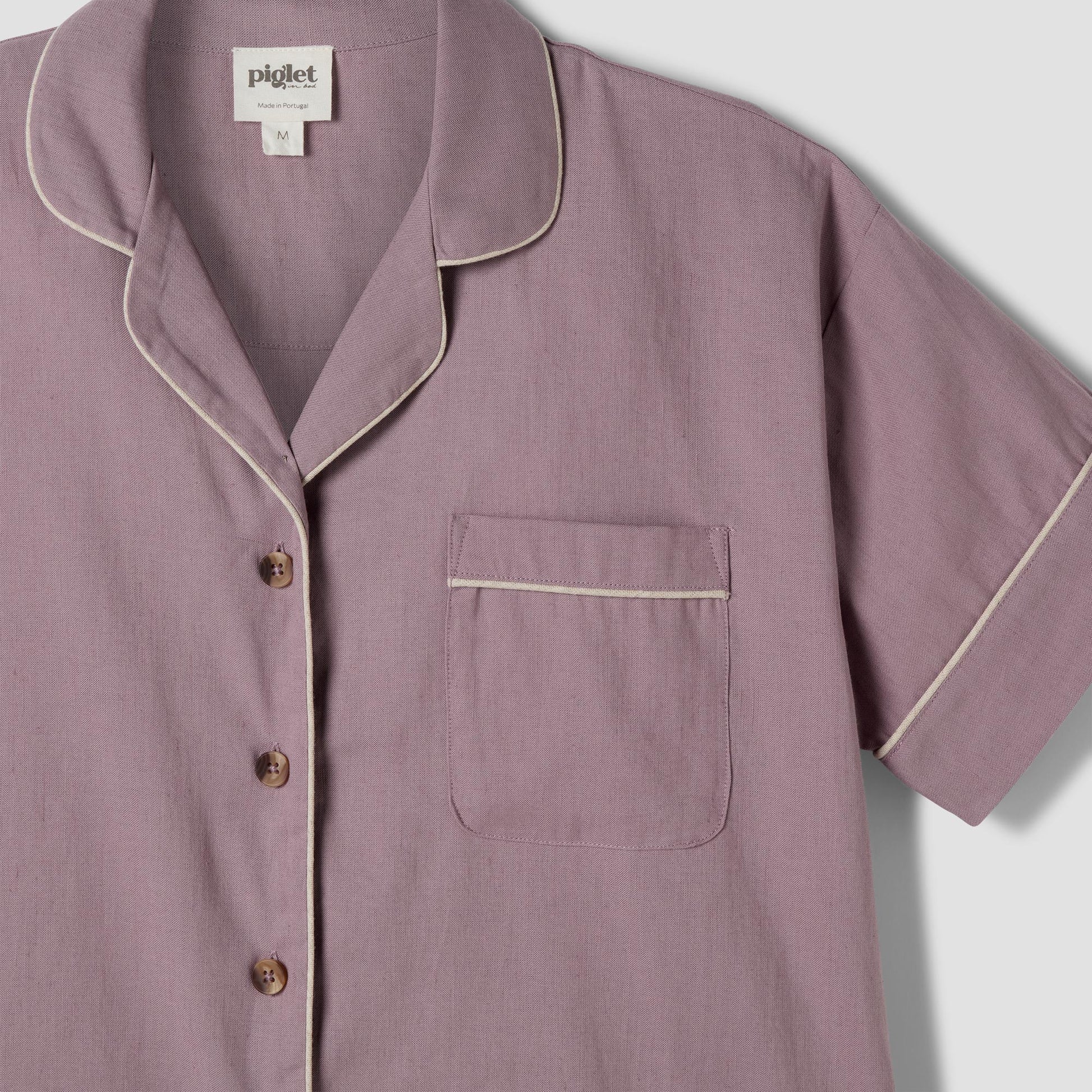 Made for easy, breathable wear, our Elderberry linen blend pyjama short set will have you waking up feeling refreshed and ready to seize the day. Combining the laid-back look of linen with the gentle softness of cotton in our dusky purple hue, these pyjamas are destined to become your new nighttime favourite.