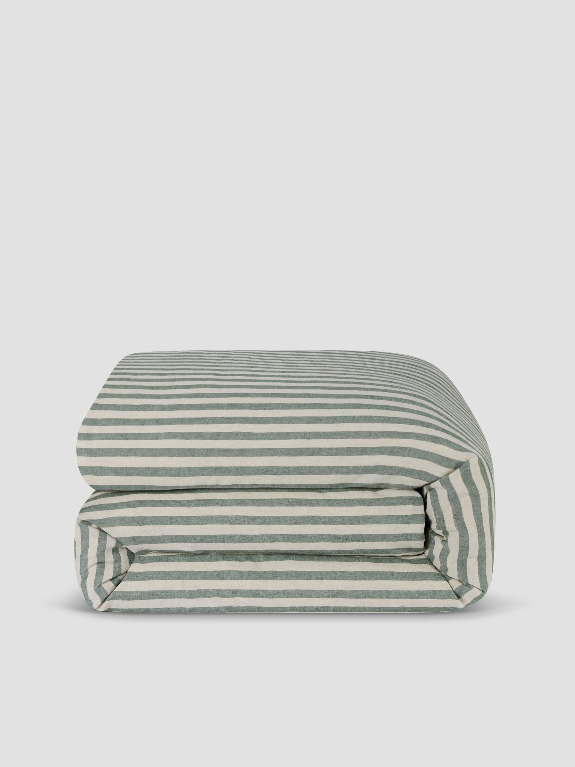 Fern Green Pembroke Stripe Linen Blend Duvet Cover