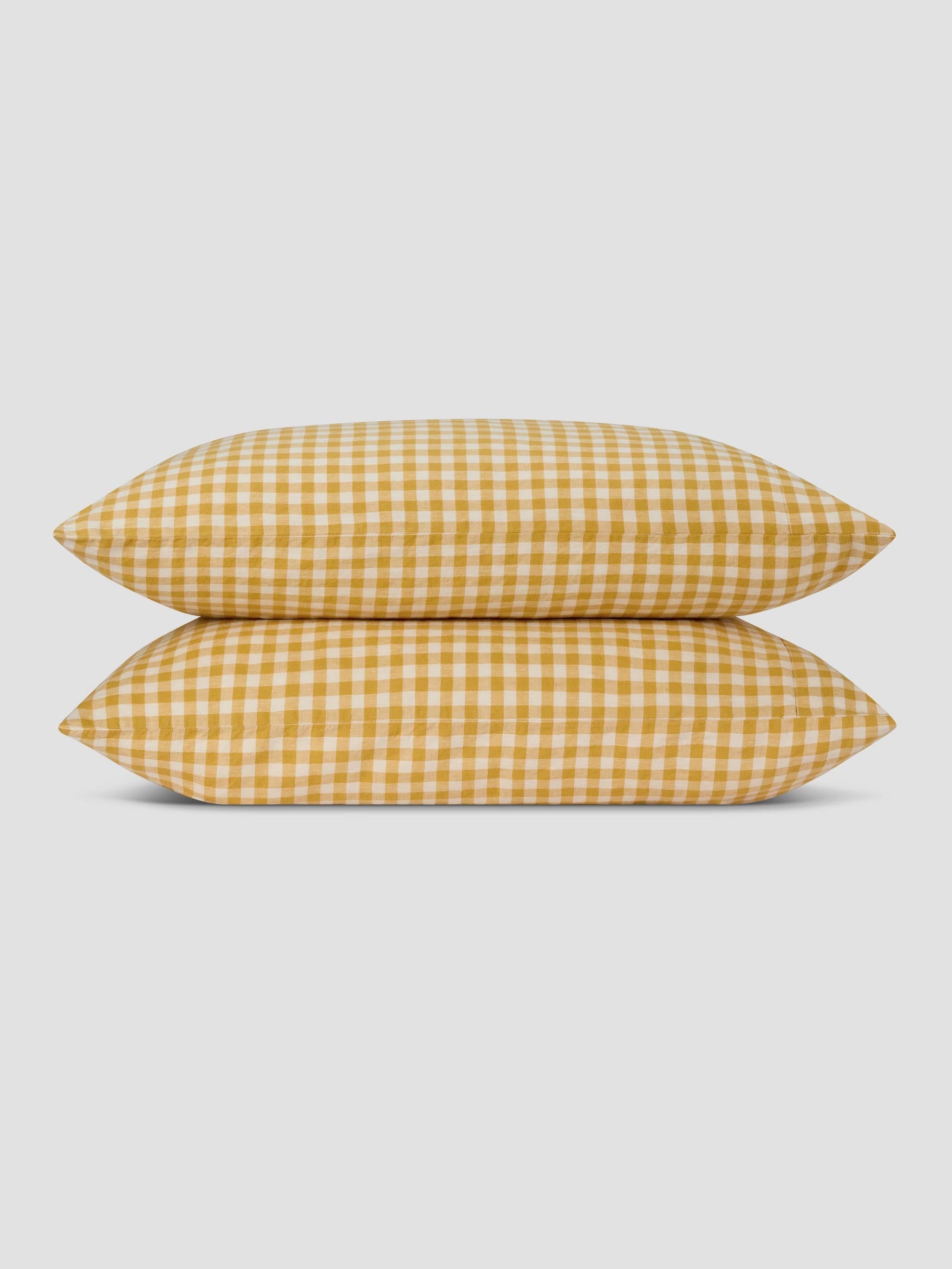 Honey Gingham 100% Linen Pillowcases (Pair)
