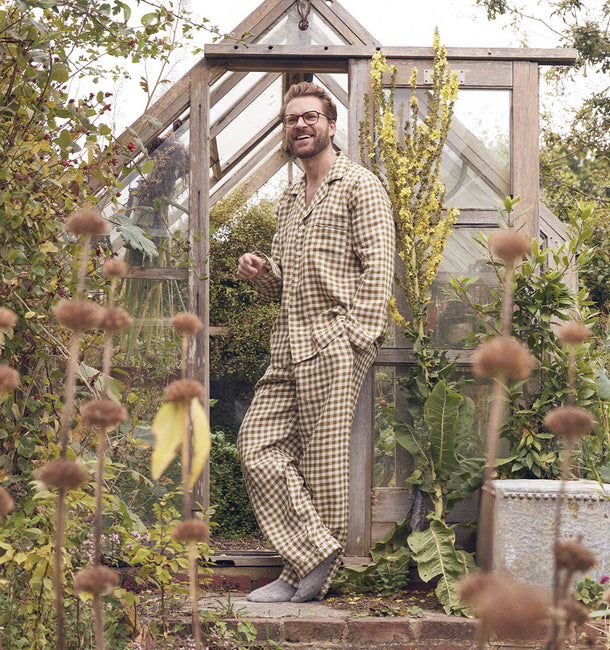 Made for nights in and slow mornings, our Men's Botanical Green Gingham Linen Pyjama Trouser Set is made from super soft 100% stonewashed linen. Linen keeps you cosy and warm in the winter and cool in the summer. The shirt and trouser shape is timeless, yet being made from lightweight natural linen makes this pyjama set effortlessly comfortable. Our gingham sleepwear is an oversized, and more relaxed fit than our core range; we recommend sizing down if a more snug fit is desired.