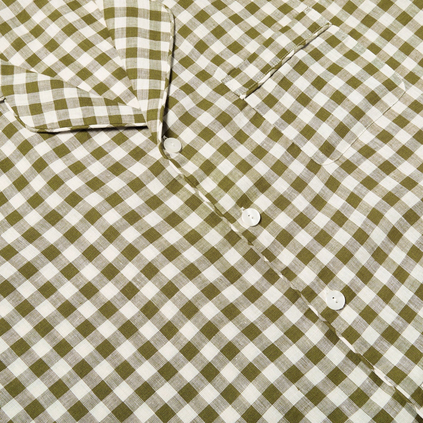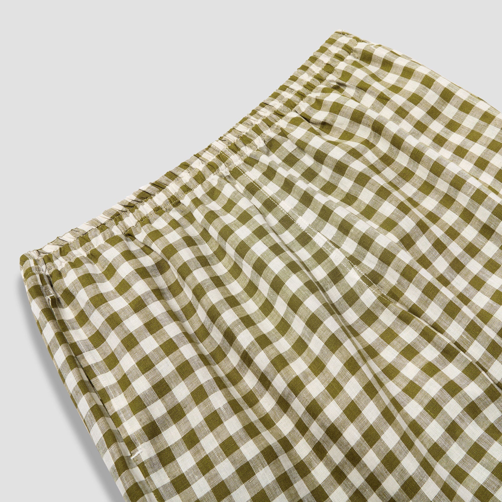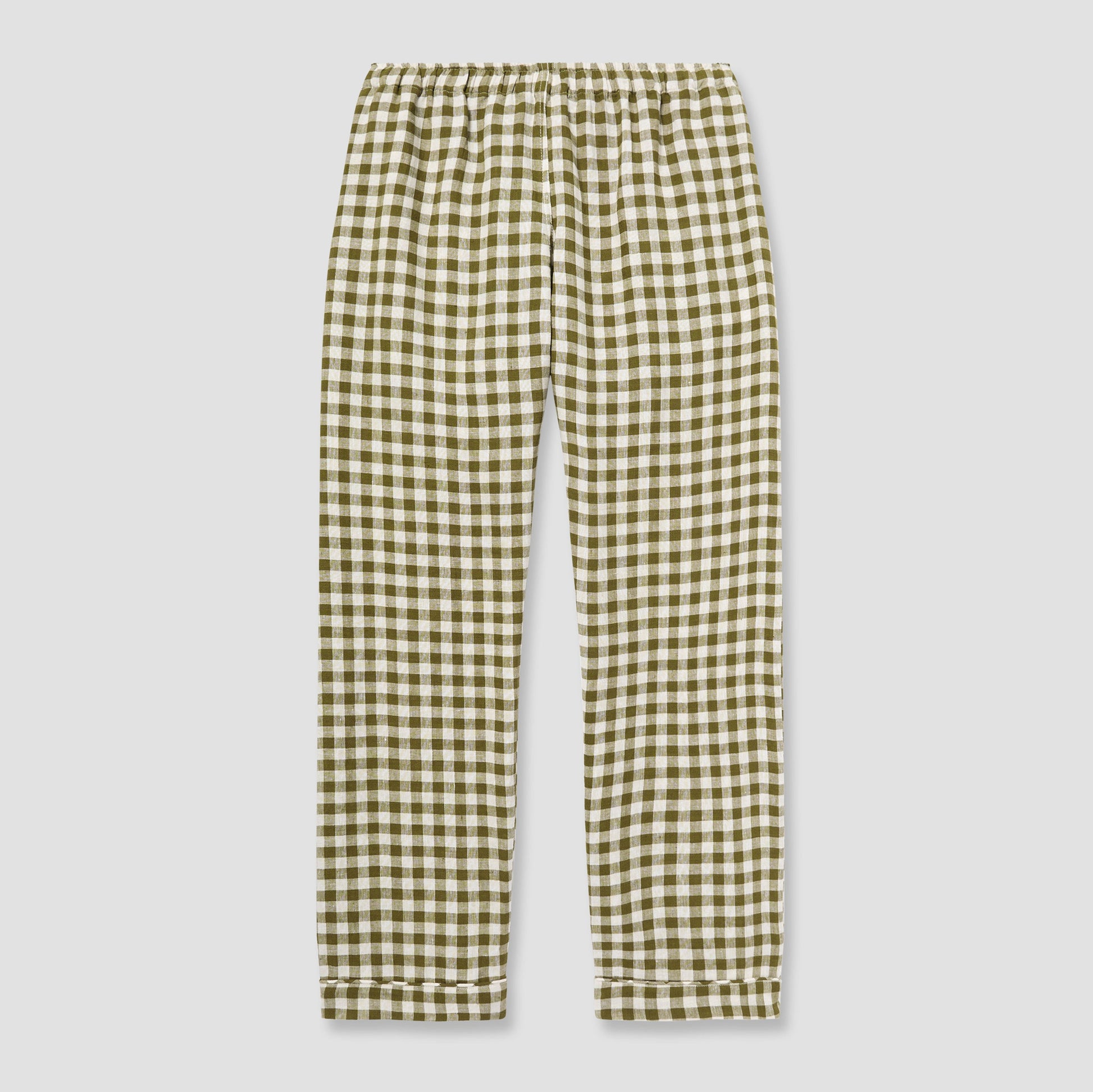 Men's Botanical Green Gingham Linen Pyjama Trouser Set