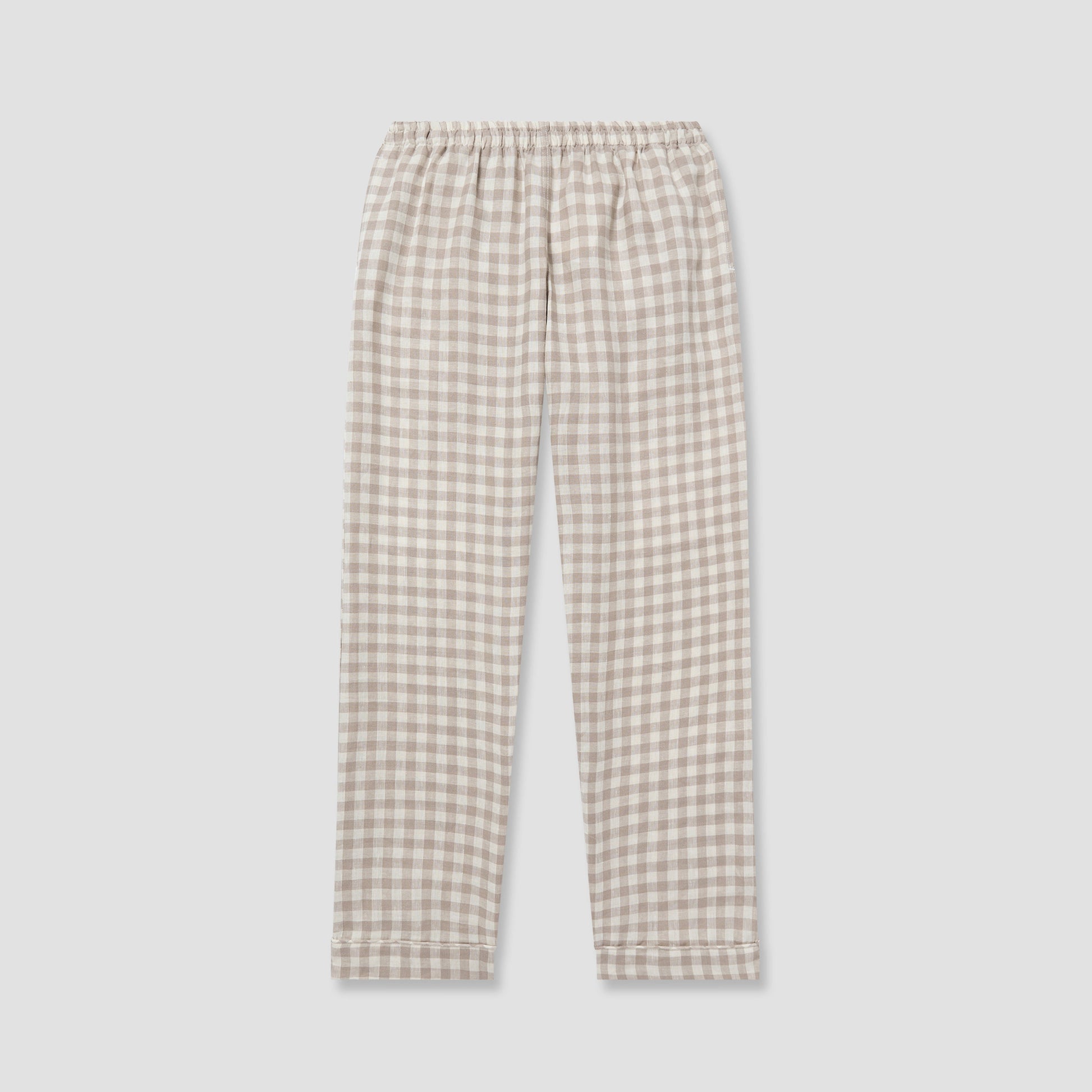 For a blissful night's kip, snuggle into nostalgic neutrals with our Mushroom Gingham Linen Pyjama Trouser Set, made from super soft 100% stonewashed linen. Made for slow weekend mornings and cosy nights in, our gingham linen sleepwear collection is completely natural and thermo-regulating, keeping you snug during winter and cool throughout the summer. The shirt and trouser shape is classic, and being made from lightweight natural linen makes this linen pyjama set effortlessly comfortable. Our gingham sleepwear is an oversized, and more relaxed fit than our core range; we recommend sizing down if a more snug fit is desired.