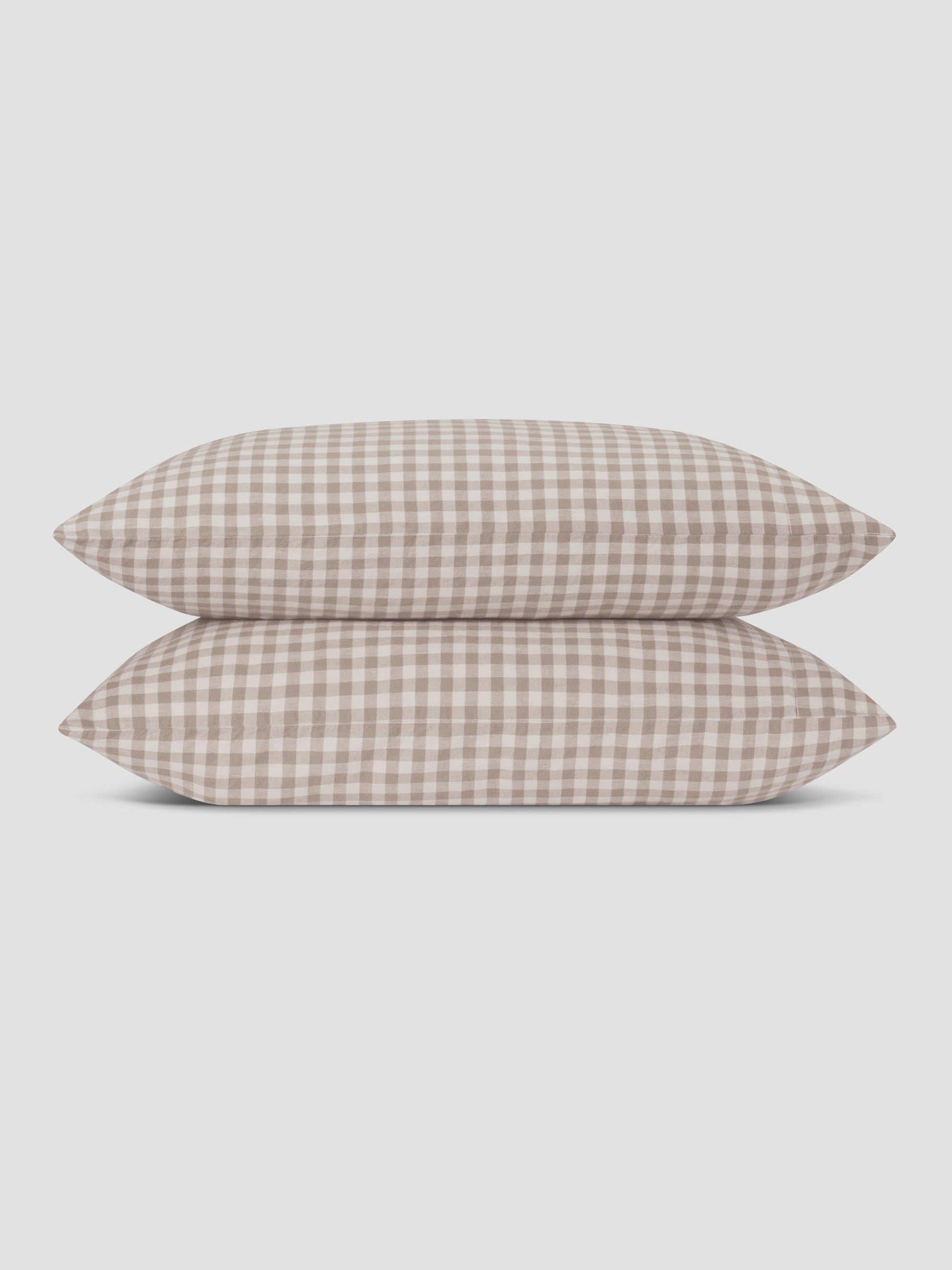 Mushroom Gingham 100% Linen Pillowcases (Pair)