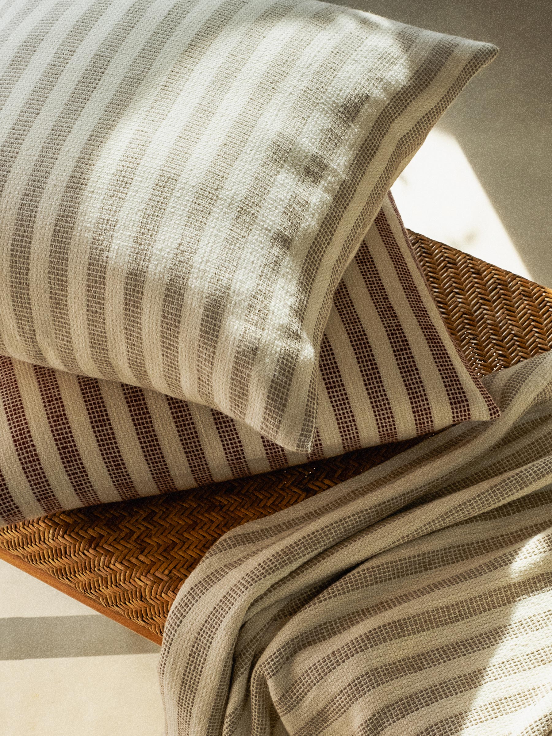 Crafted from a beautiful woven textile inspired by our signature striped design, the Oatmeal Pembroke Stripe cushion is the perfect way to add depth and texture to your space. Mix and match with complementary colours from our bedding collections or pair with a blanket or throw to snuggle up with on the sofa. Available in two sizes, 40 x 60cm and 50 x 50cm, these striped cushion covers can be combined with our corresponding cushion inserts for a luxuriously plump look.