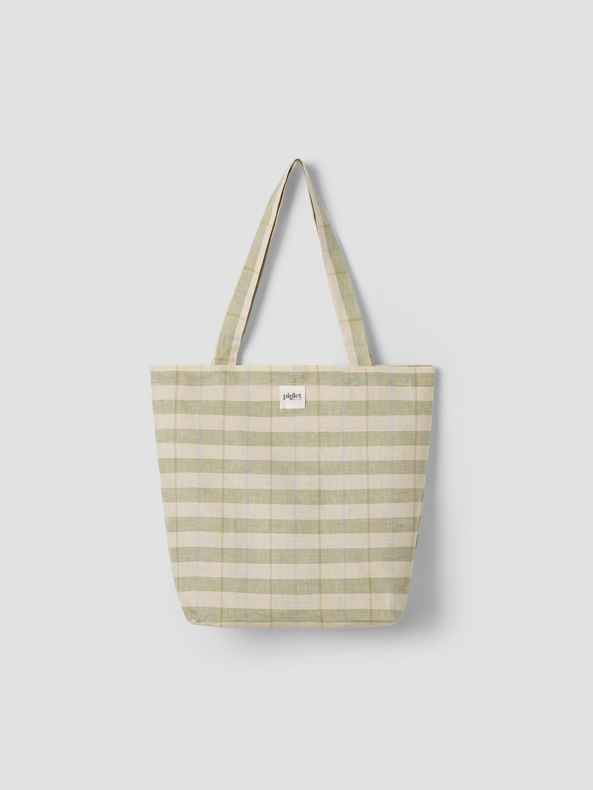 Pear Check Stripes 100% Linen Tote Bag