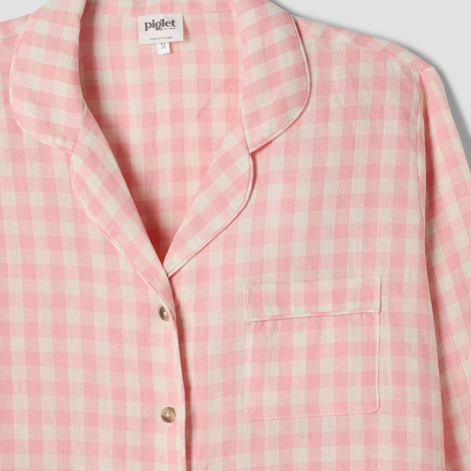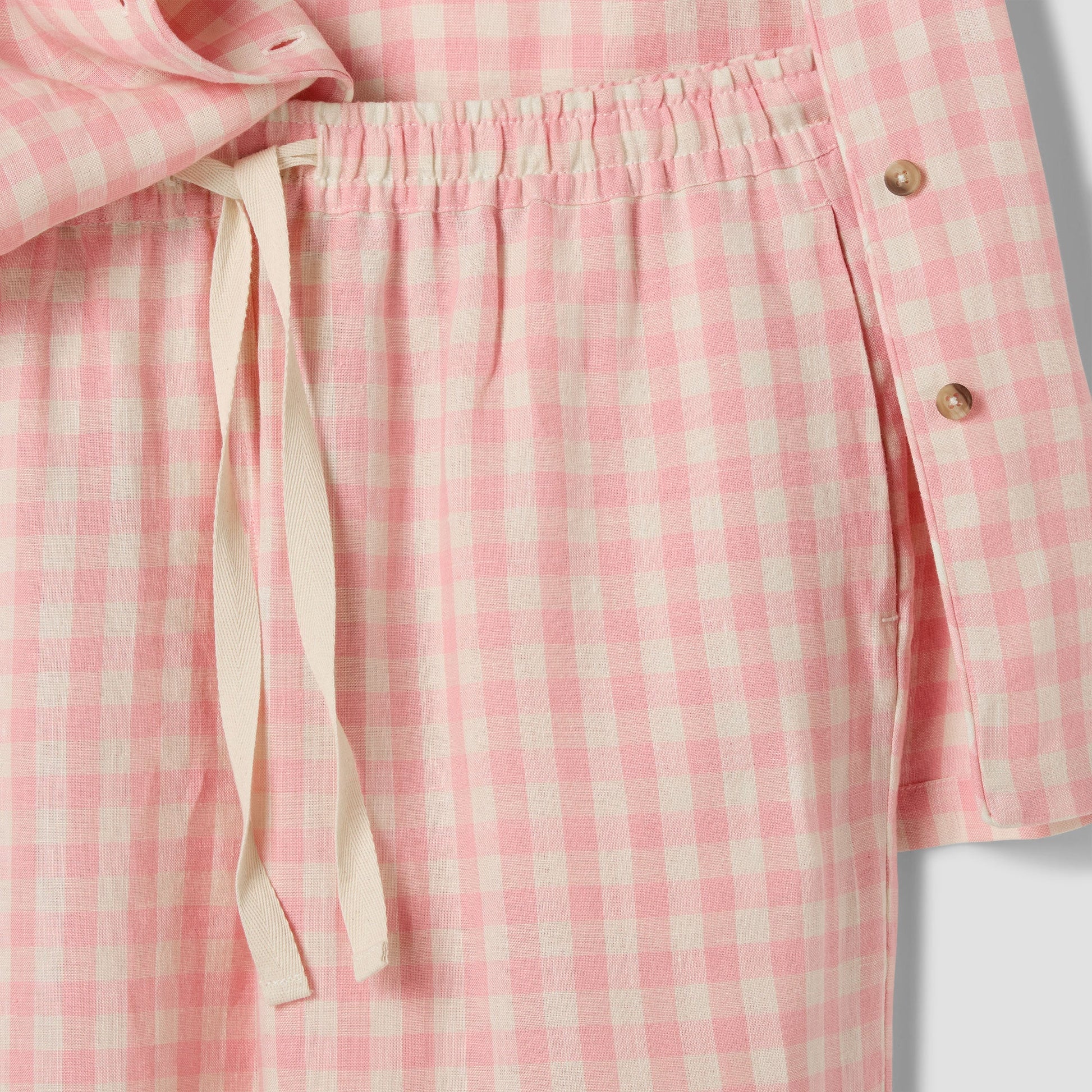 Pink Bloom Gingham Linen Pyjama Trouser Set