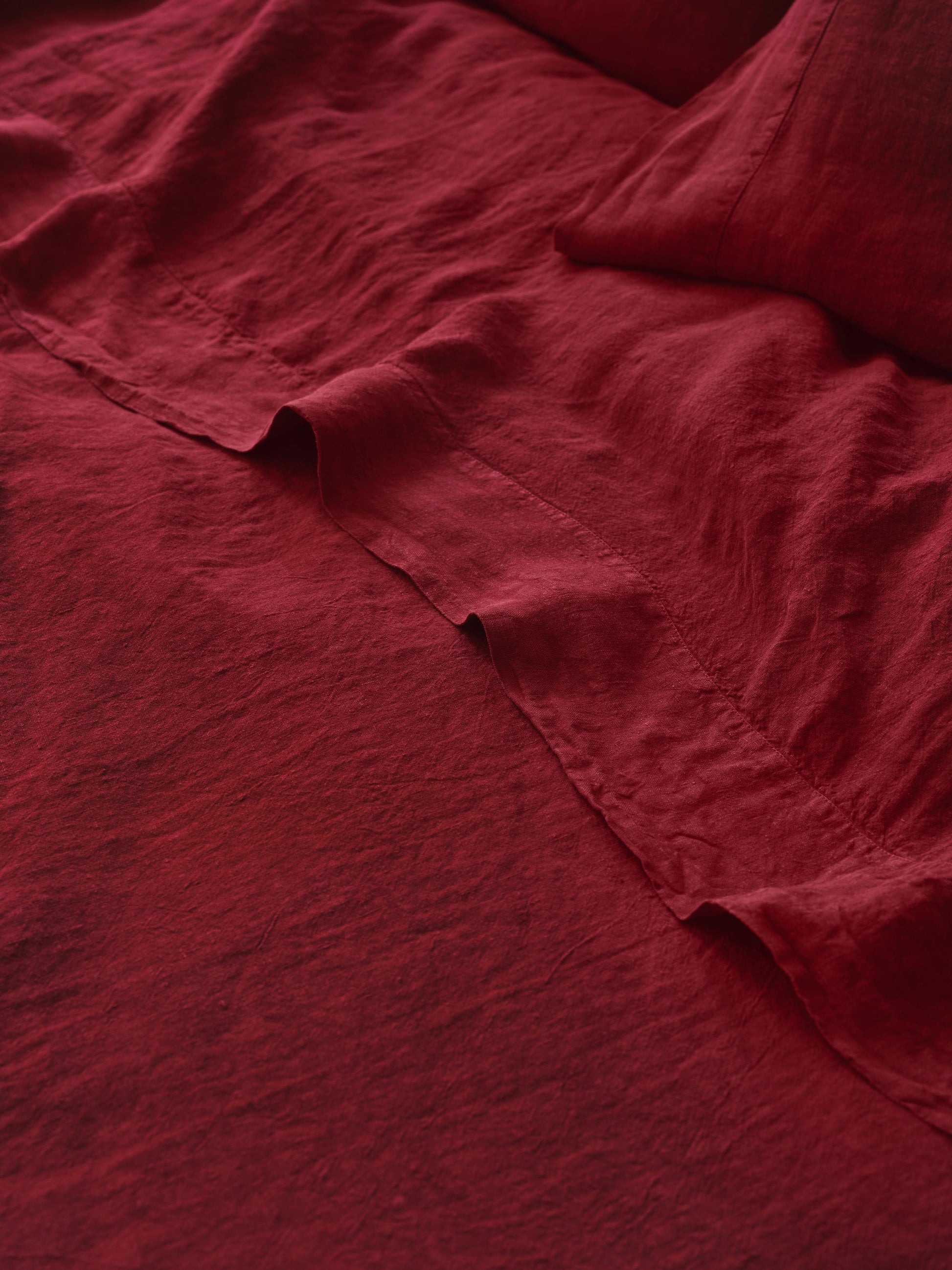 Like a slice of straight-from-the-oven rhubarb crumble, this rich-hued linen blend flat sheet is comfort at its finest. Made from only the highest-quality fibres, the breathable fabric combines the effortless look of linen with the softness of cotton. Layer in the colder months or use as a lightweight cover on warmer summer nights.