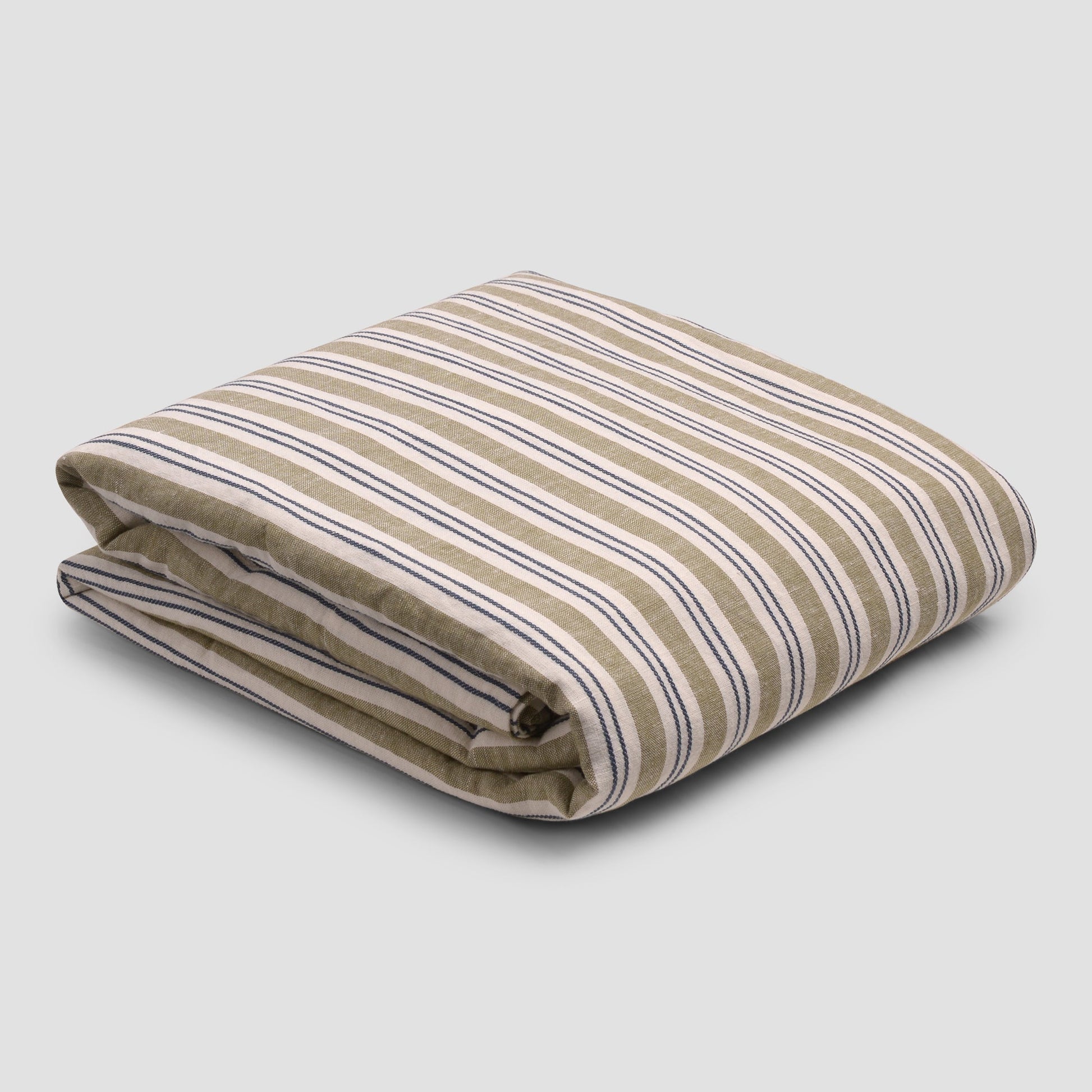 Our heritage-inspired Thyme Somerley stripe flat sheet features a classic warm green stripe interspersed with a patterned dobby weave for extra dimension. Made from a blend of European linen and cotton, this wonderfully breathable, comfortable and durable fabric offers the best of both worlds. Layer in the colder months or use as a lightweight cover on warmer summer nights.