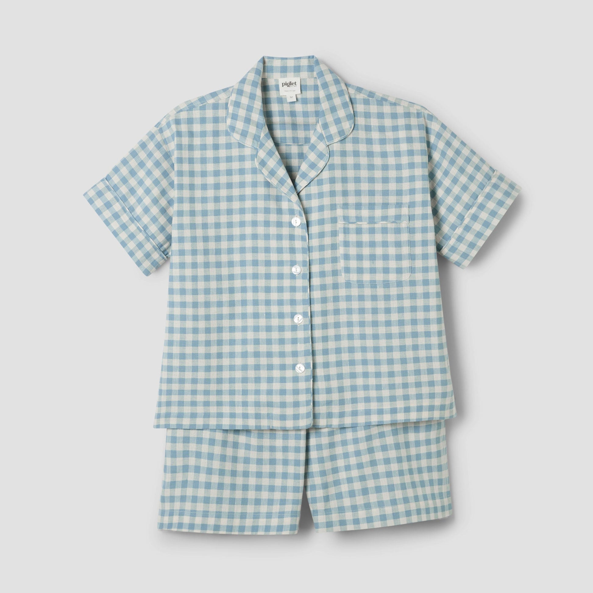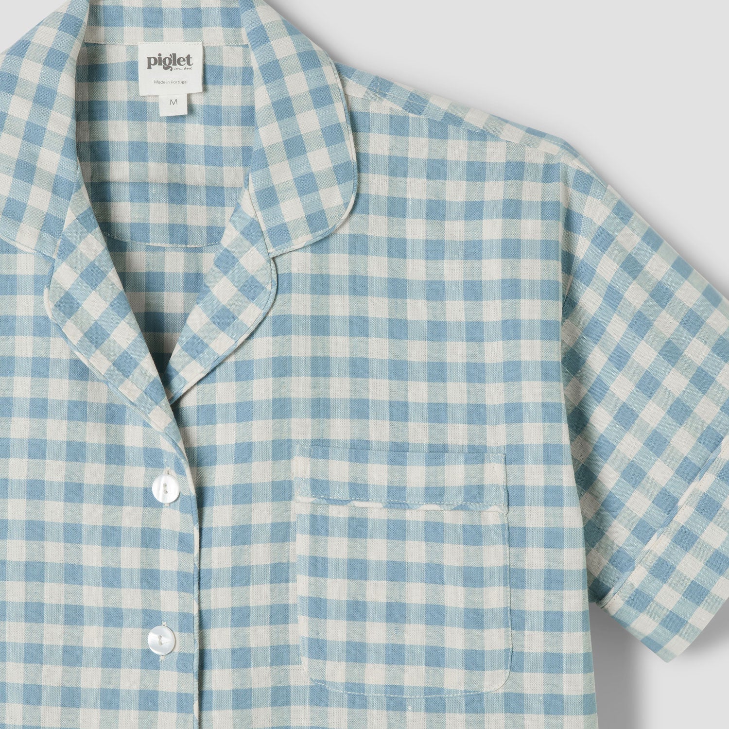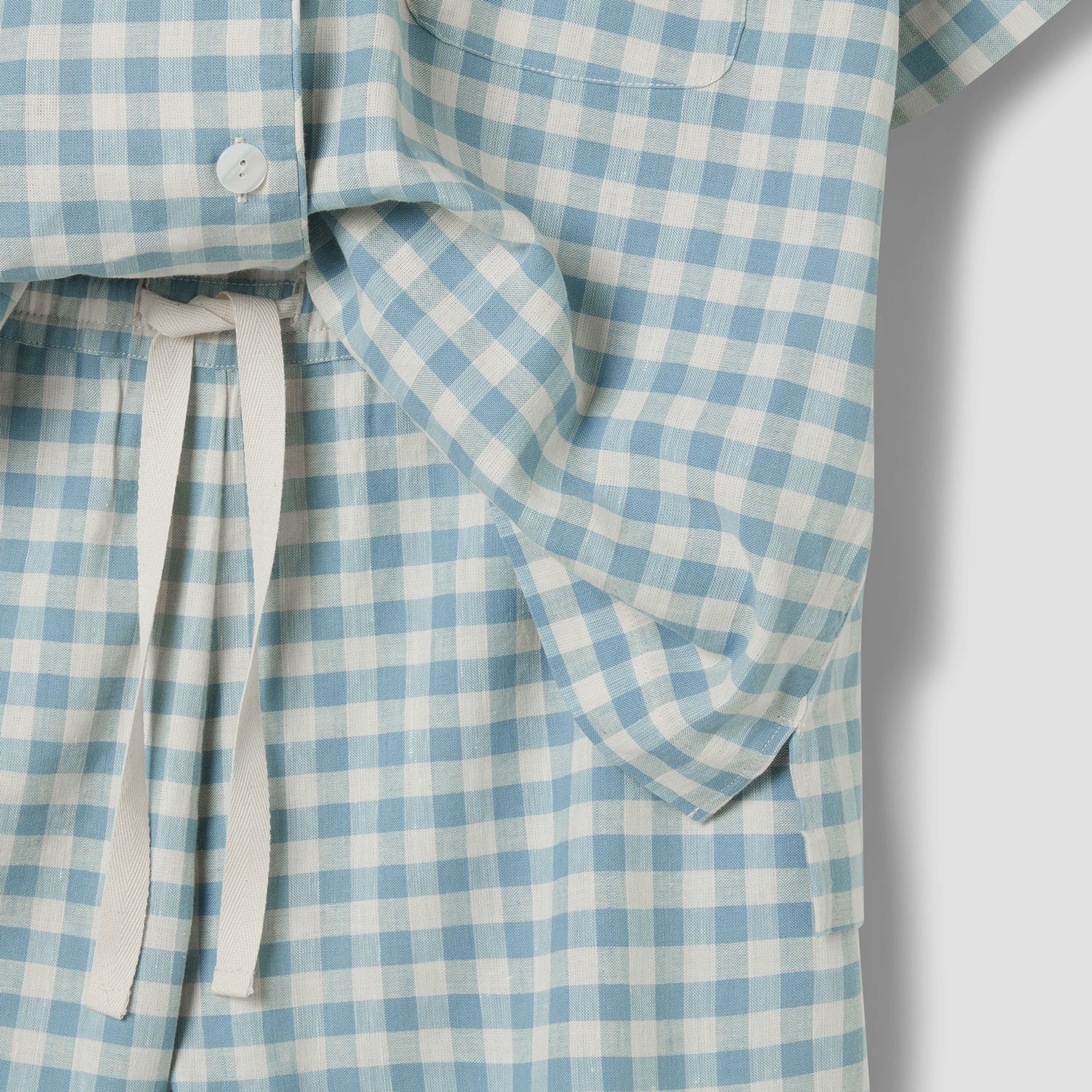 Warm Blue Gingham Linen Blend Pyjama Short Set