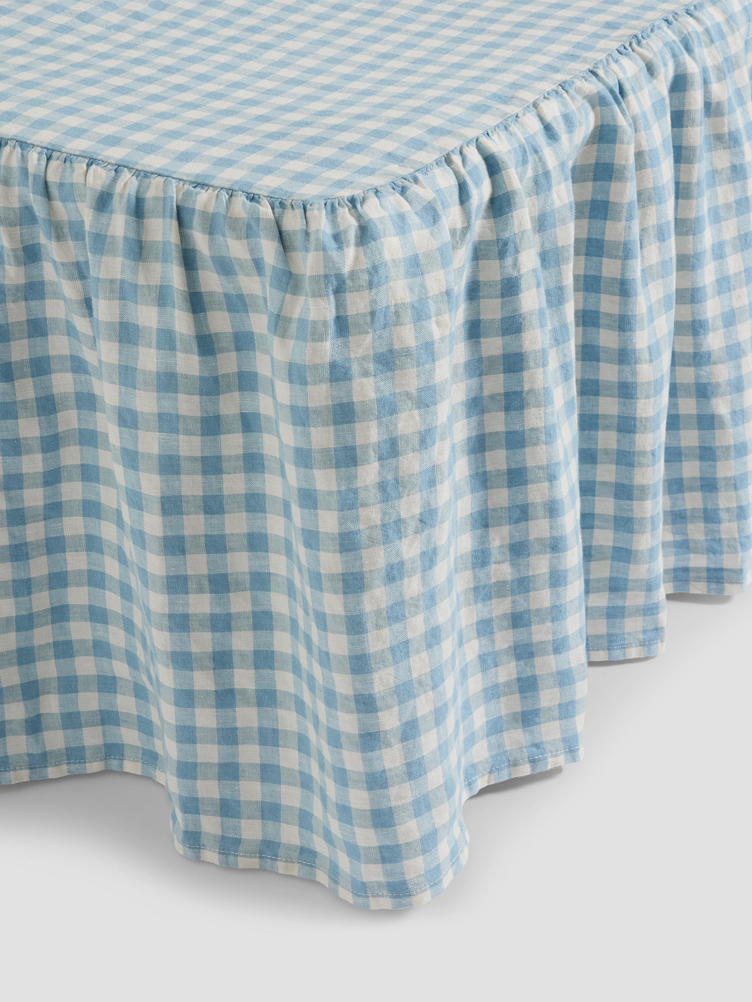 Add a touch of modern cottagecore style to your bedroom with our Warm Blue Gingham linen blend valance. Featuring our signature gingham pattern, this classic gathered skirt drapes beautifully with its soft frills. Our bed valances have a 38cm drop from the base to the floor and come in four sizes for single, double, king and super king beds.