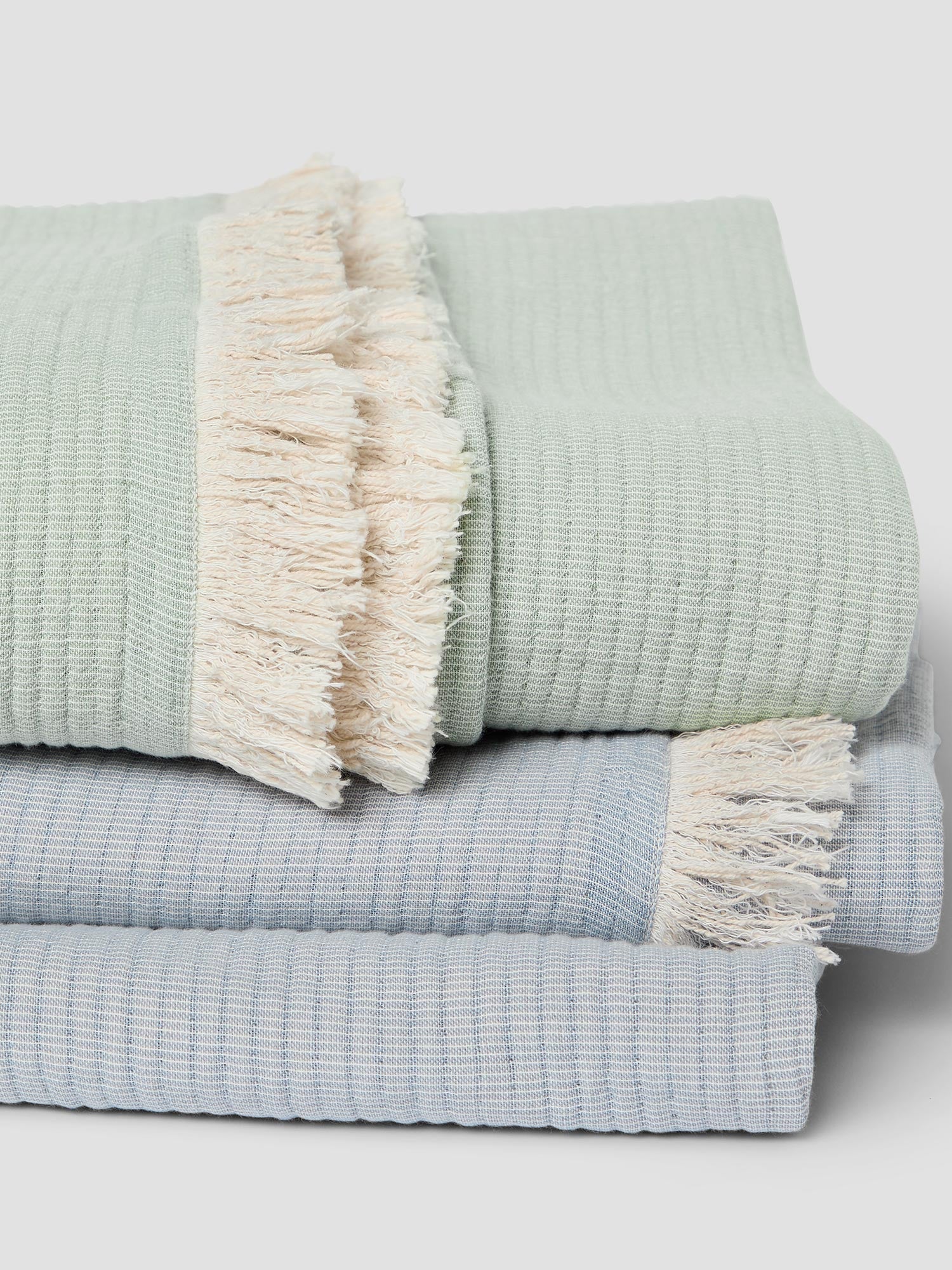 The Elm Green cotton textured throw is expertly woven with a double-weave design, creating a subtle, ruched texture that offers breathable warmth and a soft finish. Topped off with delicate fringed edges, this throw is perfect for layering on a bed or draping over your favourite armchair.