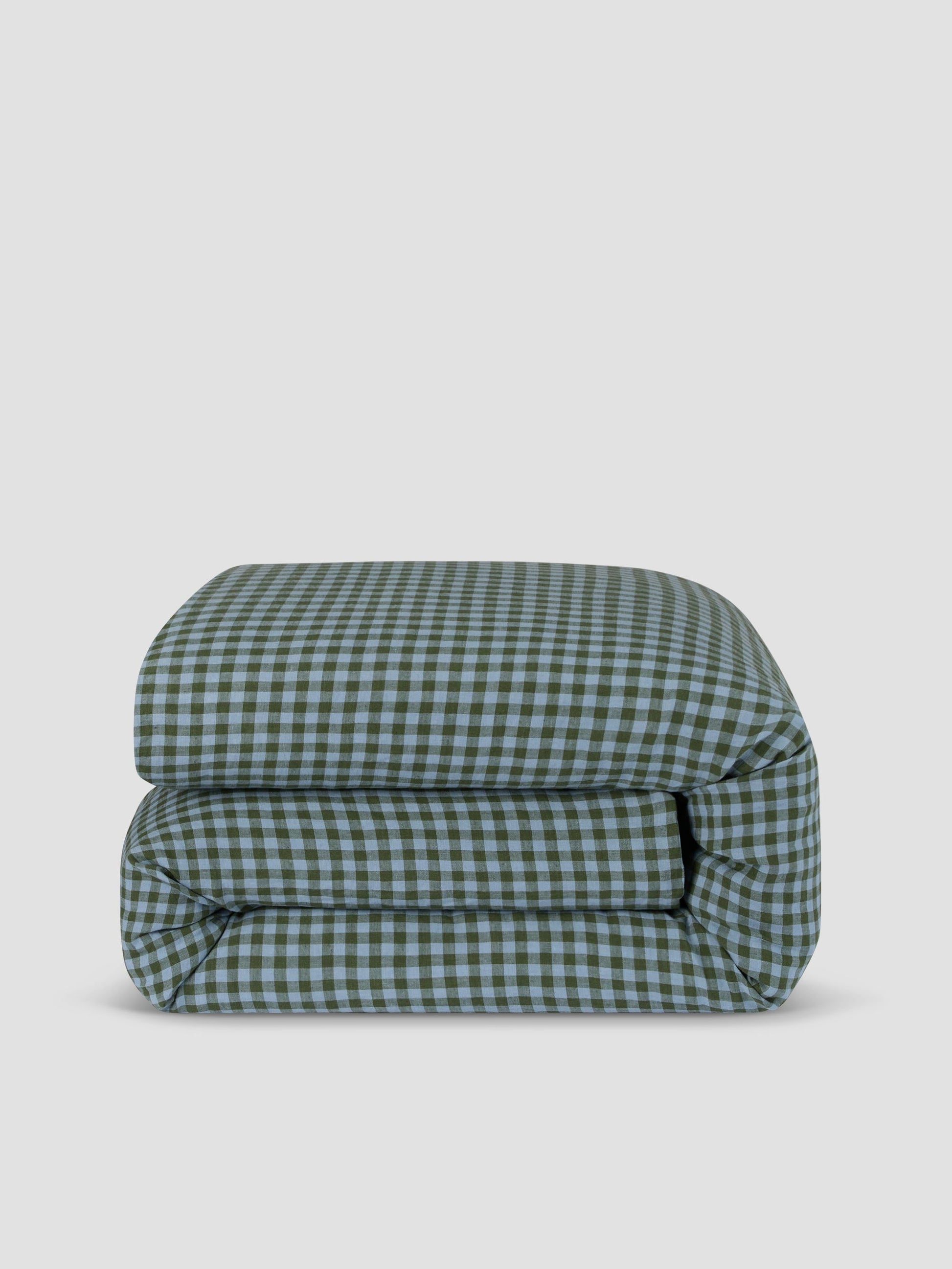 Fern Green & Dusk Blue Colour Drenched Gingham 100% Linen Duvet Cover