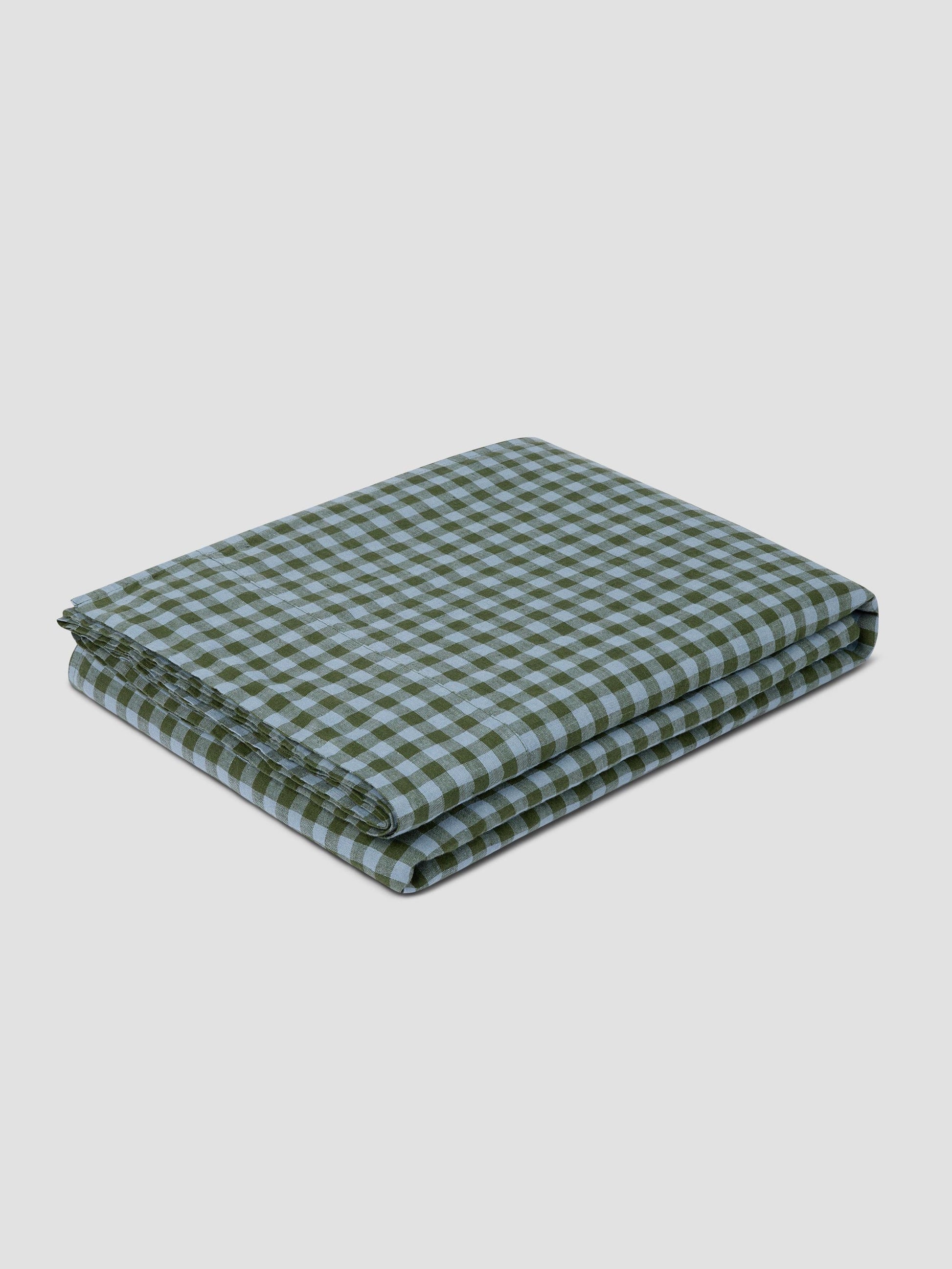Fern Green & Dusk Blue Colour Drenched Gingham 100% Linen Flat Sheet