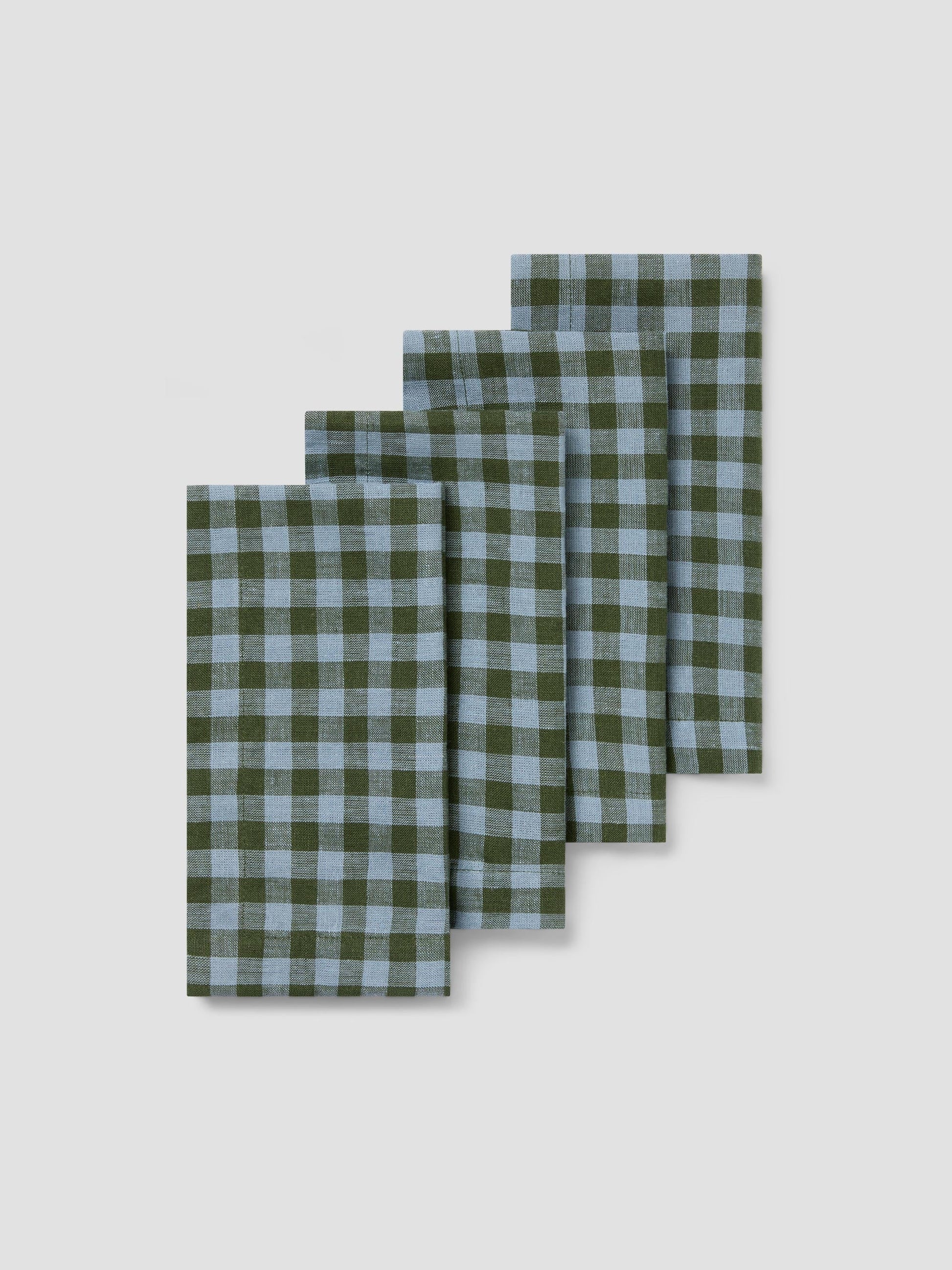 Fern Green & Dusk Blue Colour Drenched Gingham Linen Blend Napkins Set of 4