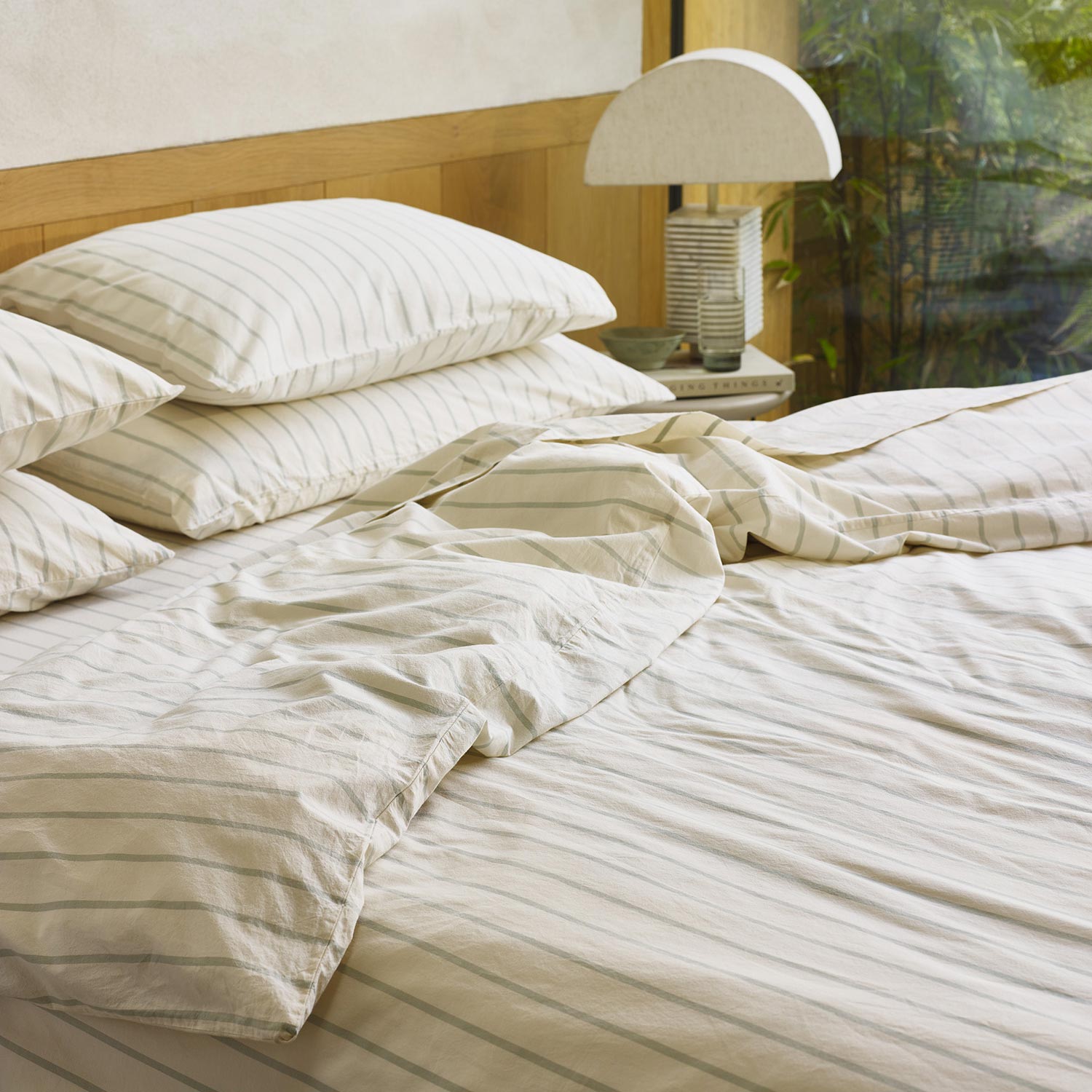 Epic movie marathons, midnight snacks in bed (no judgment here) and cosy grown-up sleepovers – our Mellow Green Slumber Stripe cotton duvet cover is made for life’s playful moments. Woven from 100% washed cotton, this bedding is beautifully soft and breathable with a relaxed, laid-back feel. All our cotton duvet covers feature natural corozo button fastenings and handy inside corner ties to stop your duvet from slipping.