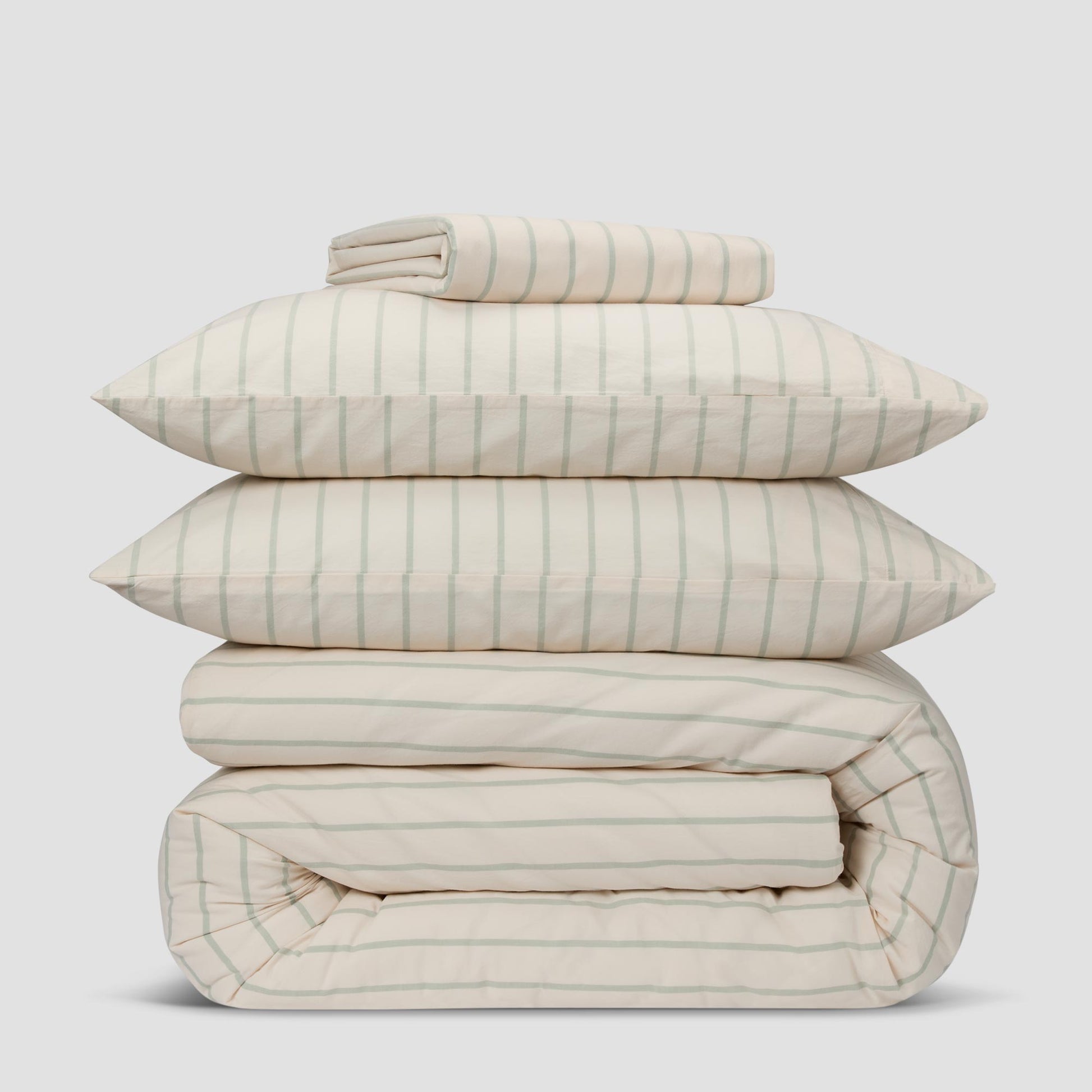 Mellow Green Slumber Stripe Cotton Duvet Cover