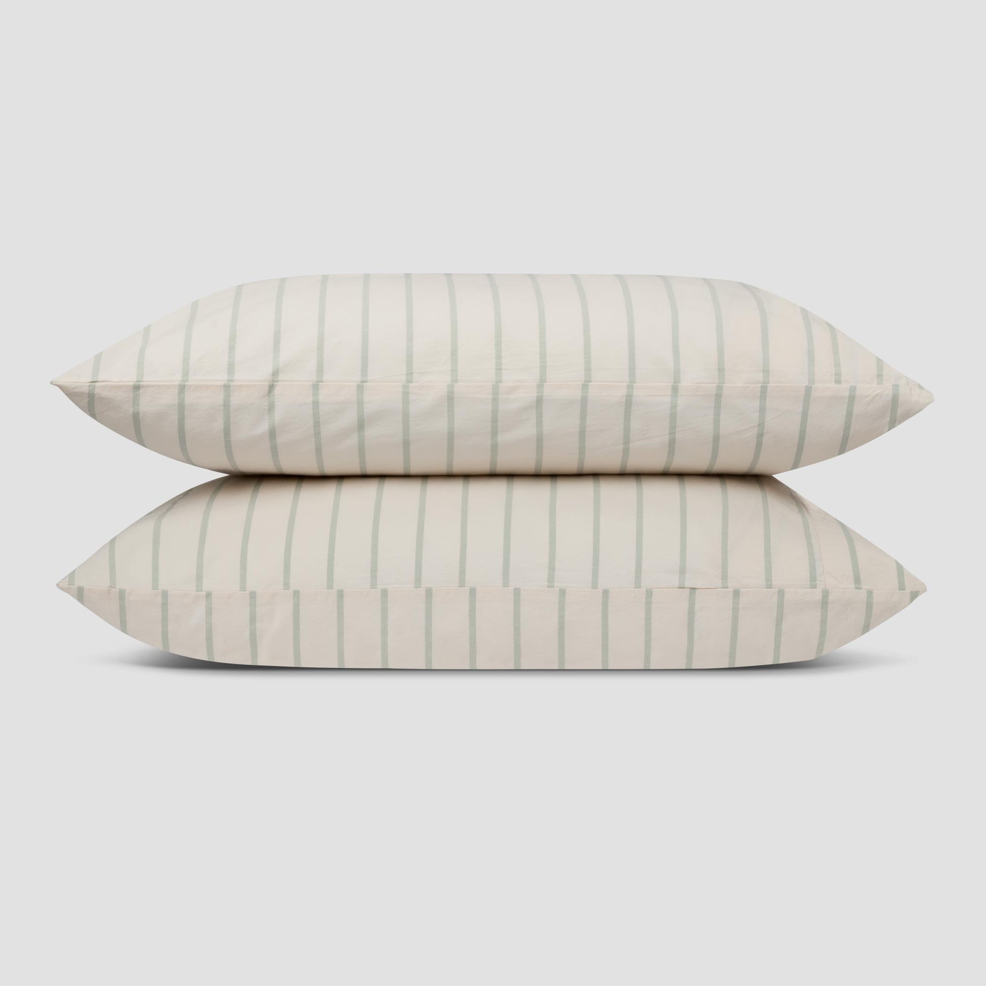 Mellow Green Slumber Stripe Cotton Pillowcases (Pair)