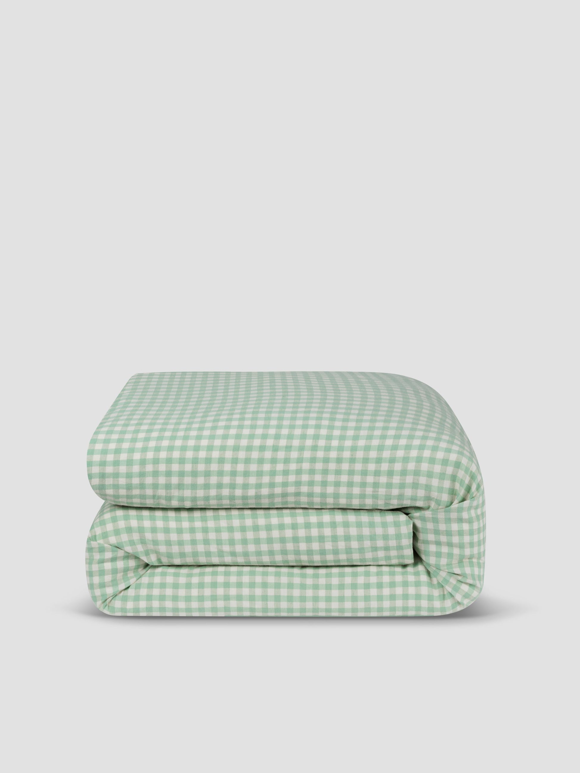 Timeless yet on-trend, our playful Sage Green Gingham linen blend duvet cover is the ultimate choice for modern cottagecore style. Made from only the highest-quality fibres, the breathable fabric combines the effortless look of linen with the softness of cotton. Our linen blend duvet covers are finished with coconut shell button fastenings and feature handy inside corner ties to stop your duvet from slipping.