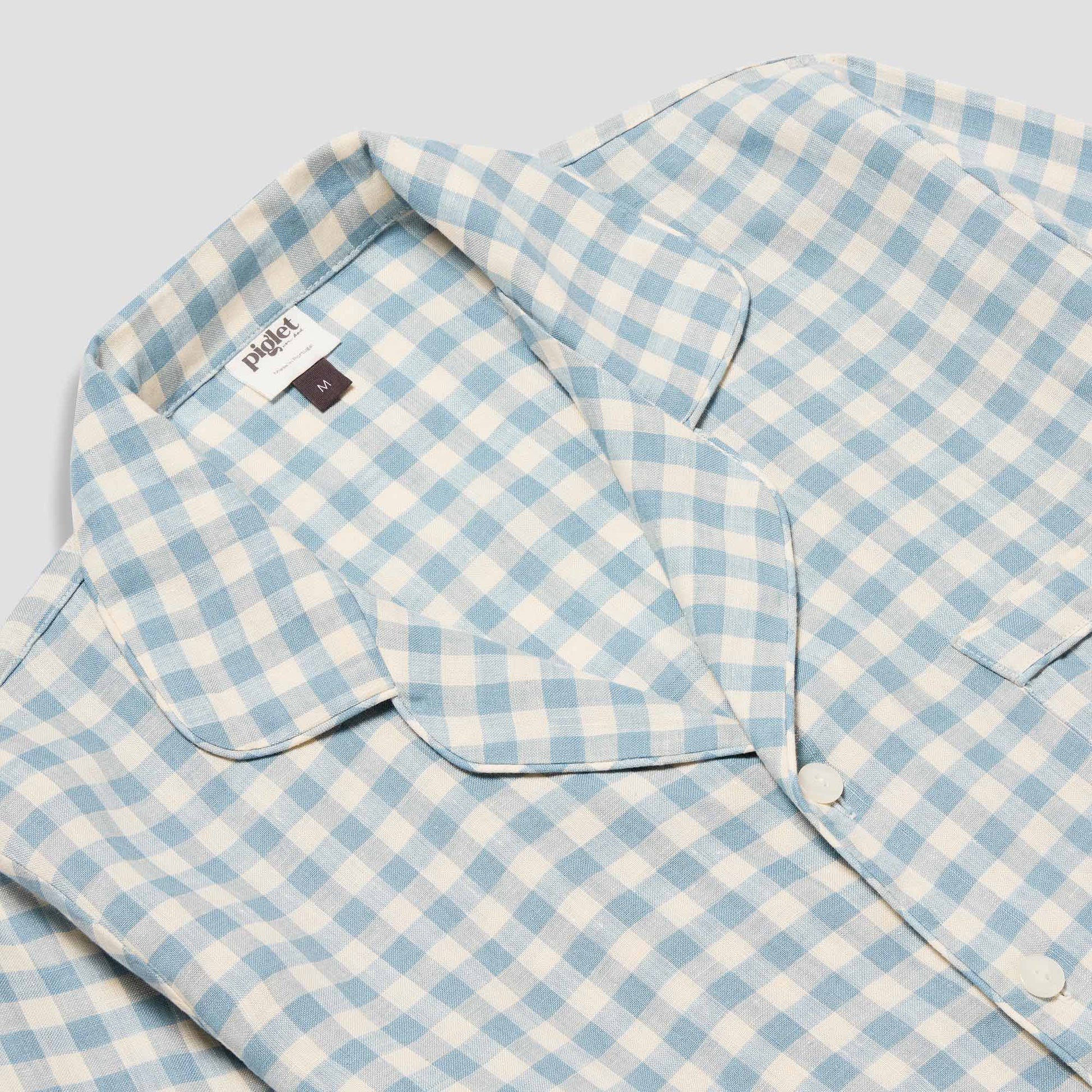 Warm Blue Gingham Linen Pyjama Shirt
