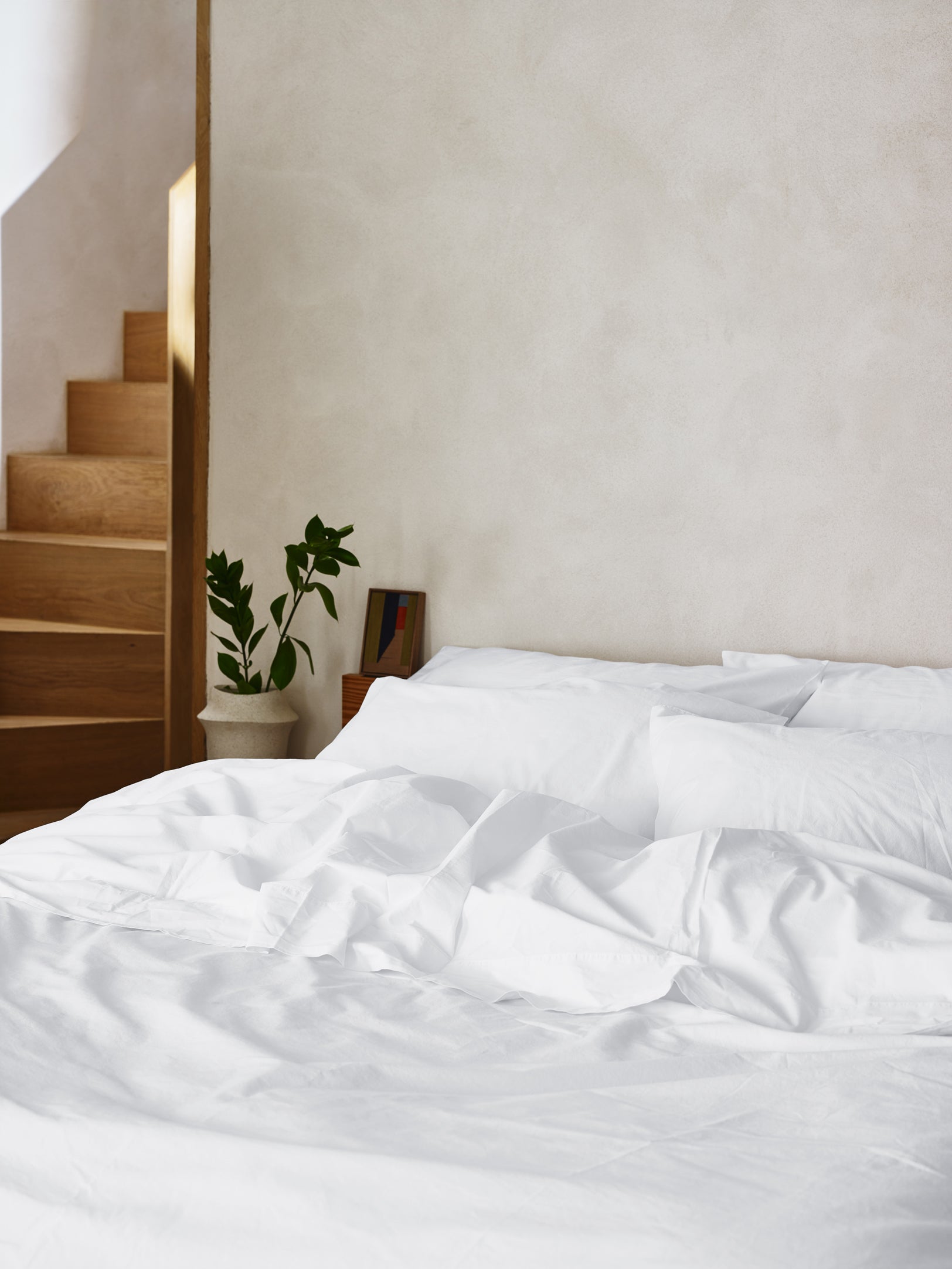Our 100% cotton percale duvet covers are washed for extra softness, while the percale weave allows for a matte finish, high breathability and a relaxed look. Perfect for lovers of no-fuss, high quality cotton bedding. Our duvet covers feature handy ties on the inside corners to make sure that your duvet stays put inside the cover all night long. Pictured here in our classic and timeless White, which looks beautifully crisp on its own or can be teamed with any of the other shades in our cotton percale bedding range.